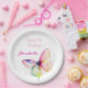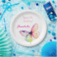 Celebrate her special day in style with this personalized pastel rainbow butterfly birthday plate. Featuring a soft watercolor butterfly design and elegant script name customization, this plate is perfect for a magical garden or spring birthday party. Add your child’s name for a beautiful and coordinated party table look.