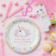 Pastel Rainbow Floral Cute Unicorn Birthday Party Paper Plate