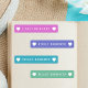Pastel Boho Rainbow Kids Waterproof Name Labels with heart silhouettes on each end. Personalised Name Label Stickers in pink, purple, blue and green.