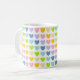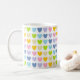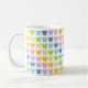 Abstract digital rows of pastel rainbow coloured hearts against a white background. Colours include pink, gold, ecru, lime green, pastel blue, blue grey and lavender.