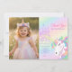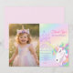 Pastel rainbow unicorn artwork with watercolor wash background and castle illustration. This whimsical fairytale layout features elegant script typography and dreamy pastel hues, perfect for a magical girl birthday party celebration.