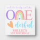 ACelebrate your little one’s special milestone with our Personalized Pastel Rainbow ONEderful First Birthday Plaque with Easel. Featuring a charming pastel rainbow design, this 13.3 cm x 13.3 cm (5.25" x 5.25") hardboard panel is printed with a stunningly crisp dye-sublimation process and protected with a UV-resistant gloss. Perfect as a decorative piece or keepsake, it includes an easel stand for easy display. Durable and vibrant, it’s the ideal way to commemorate this magical occasion.