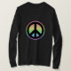 Pretty pink, light blue, green, purples pastel rainbow background with a black peace sign.
