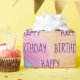 Pastel rainbow-coloured abstract design with gold accents for birthday.