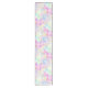 This table runner features a gorgeous swirl of tie-dye style pastel rainbow colours with subtle holographic, iridescent, and watercolor imagery.
