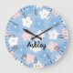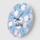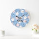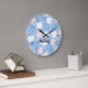 Pastel Retro Flowers on Blue Large Clock
