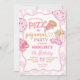 Preppy Love Pizzas Pyjamas Birthday Invitation, Pink Bow Italian Slice Pizza Birthday Girl Invites, Groovy Sleepover Movie Night Party