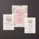 A wedding invitation featuring pastel rose bouquets and a shabby chic design.