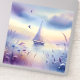 This artwork captures a serene coastal dreamscape where a solitary sailboat glides across glassy water beneath a soft, luminous sky. Gentle pastel hues of lavender, blush, sky blue, and warm cream blend seamlessly, creating a calm, airy atmosphere that feels both whimsical and contemplative. Delicate grasses and wildflowers frame the foreground, adding a subtle cottagecore and folk-inspired charm, while birds in flight bring a sense of quiet motion and freedom. The painterly style feels light and fluid, evoking watercolor softness and an enchanting, storybook mood. Overall, the scene suggests peaceful escape, slow living, and a connection to nature, making it soothing, romantic, and visually poetic. AI generated artwork.