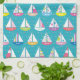 Pastel Sailboat Pattern Tea Towel