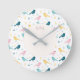 Pastel Scandi Birds Pattern Custom Name Nursery Round Clock