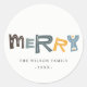 Pastel Scandi Yellow Grey Text Merry Christmas Classic Round Sticker
