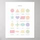 The shapes included on the poster may include common geometric shapes such as circles, squares, triangles, rectangles, and more. Each shape is presented in a visually appealing manner, making it easy for children to recognise and remember.