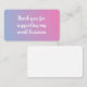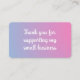 This flat enclosure card features a soft pink and purple pastel gradient and a friendly “thank you for supporting my small business” message. It’s perfect for adding a quick, thoughtful touch to your packaging or orders.
