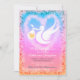 A tastefully rendered Stork in flight with baby bundle of joy is complimented by heart shaped clouds set against a pastel buff textured, blue rose tinged sky. All bordered by multi coloured leaves in this elegant fully customisable design. Complete with matching illustration on invitation’s back.