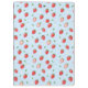 A playful pattern filled with hand-painted strawberries, tiny white flowers, and green leaves on a light blue pastel background. Great for spring-themed products or cute fabric prints.
