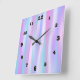 Painted abstract stripes in shades of pink, purple and teal. Black traditional clock face to match the minute and hour hands. 10.75" x 10.75". Click on the "Customise It!" button for more design options.