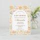 A whimsical watercolor design featuring a playful mix of pastel summer animals surrounded by tropical leaves, seashells, starfish, and soft botanical details. The cheerful palette of peach, mint, coral, and soft blue creates a light storybook atmosphere, while the elegant arch layout keeps the celebration details beautifully framed and easy to read. Perfect for a warm, joyful summer celebration with a charming nursery aesthetic.