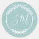 Pastel Teal White Leaf Wreath Monogram Wedding Classic Round Sticker
