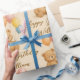 Celebrate a special birthday with this adorable wrapping paper featuring a cute teddy bear holding pastel balloons. The soft pastel colours make it perfect for wrapping gifts for kids, baby showers, or any occasion where a little extra charm is needed. This wrapping paper adds a sweet and playful touch to your presents, creating a memorable moment before the gift is even opened! Customise your gift wrapping for birthdays with this delightful design that everyone will love.