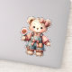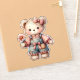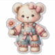 Pastel Teddy Bear Holding Flower Wearing Overalls