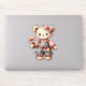 This sweet pastel teddy bear design captures a heartwarming, storybook charm with its soft, textured brushwork and cosy vintage aesthetic. Dressed in distressed denim overalls adorned with a pink bow and gingham patchwork, the bear holds a delicate daisy-like flower, radiating innocence and gentle warmth. Large, glossy eyes and blushing cheeks enhance the expressive, kawaii-inspired style, while the muted pink and cream tones evoke a dreamy, cottagecore atmosphere. The layered clothing, lace collar, and stitched details give the character a lovingly handmade feel, perfect for evoking comfort, nostalgia, and childlike wonder. This illustration bridges classic plush toy appeal with trendy soft girl and nursery-core vibes. AI generated artwork.