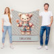 Pastel Teddy Bear Holding Flower Wearing Overalls Fleece Blanket