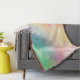 A quality printed throw has its advantages. This is a much finer weave throw than its loopier cousins, and though lighter, it is worth the investment for custom room accessorizing. The back is much prettier than the typical brown, and the fringe on the long sides very vivid, the selvage nicely done. Before photographing, I washed the throw in cold water, delicate, with a thicker woven throw the same size. On tumble dry low, this throw was dry in half the time as the other. This is a very practical quality if you use throws for furniture covers or to wrap up in frequently. The sleekness of the fabric makes it a great layer for accenting or protecting without the feeling of sitting on too much stuff. Perfect for napping or when you feel a light chill coming on. The color printing is beautiful and on this fabric, matched the design and color of my Photoshop image. This is an advantage for blending room fabrics and colors. The fringe on the short sides prints the colors from the design image and therefore varies from the side fringe. I streaked a white fractal line through the plaid pattern to give the illusion of weaving. This printed as crisp as an illusory thread, and put some white in the short side fringe, showing another advantage of print vs loomed- for artistic purposes, line lines, detail, and color integrity can be planned and preserved. My loomed throws have color limitations and more of a needlepoint texture. Print throws reproduce an exact image. The throw felt a little stiff straight out of the package, but this went away in the first delicate wash. Of course I searched the wash water for ink or bleeding and there was none.