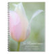 Invite guests to leave a note in remembrance of your loved-one after their passing with the elegant Pastel Tulip Spring Funeral Memorial Guest Book. This classy custom flowery celebration of life tribute notebook features a close up digitally painted floral photograph of a tulip flower blossom on the stem in shades of light pink, peach, cream and white with a blurred green botanical garden in the background. Personalise it with birth and death date and name. Perfect inspo or idea for a March, April or May springtime season event.
