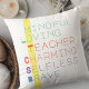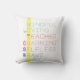 Mother Acronym Pillow with pretty multi-color typography. The wording reads Mindful, Loving, Teacher, Charming, Selfless, Brave in uppercase lettering. The words of praise are in a pastel color palette of light teal, sage green, orange, pink, lavender and cornflower blue. MOTHER is highlighted with a soft yellow stripe, which matches the back of the pillow. A lovely gift of appreciation for Mother's Day, a birthday or just because. Please browse our store for more mom gifts.