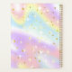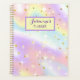 Lovely pastel watercolors with gold splatter dots and twinkling white stars gives this Planner an ethereal dream like feeling. Personalise it at the top inside a purple rectangle against a pale yellow background. Your name will be in a modern purple script.