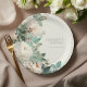 Pastel watercolor rose peonies winter spring floral wedding paper plates featuring elegant calligraphy script modern watercolor flowers soft green leaves and ivory background