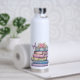 PASTEL WATERCOLOR STACK OF BOOKS WITH BUTTERFLY WATER BOTTLE