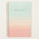 This stylish custom planner features beautiful abstract watercolor stripes in pastel shades of seafoam and peach coral. Personalise it with your name in handwritten script lettering. Great gift idea.