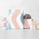 A Wrapping Paper Design Of Pastel Chervon Wavy Lines In White, Pink, Blue, And Orange For Any Type Of Gift Like Birthday's or Baby Shower