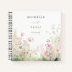 This design features a delicate, romantic watercolor illustration of wildflowers in shades of green and pink.
