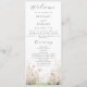 This design features a delicate watercolor illustration of wildflowers in shades of green and pink.