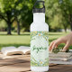 Custom daisy water bottle in pastel green and yellow, on a dotted background.