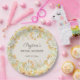 Pretty pastel yellow watercolor flowers bridal shower paper plates personalised with the name of the bride-to-be and her bridal shower date. Perfect for your spring or summer bridal shower".