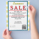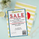 Pastel yellow and white watercolor stripes. Jewelry or any business . Summer Sale typography is bright yellow and red. Ocean blue and white background to insert Sale price and date details. Upload Your Logo, or delete to leave area blank. Insert Name and Website or other contact QR Code. Summer written in yellow script. Thank You is written inside large red heart on backside. Original Design by TamiraZDesigns.