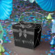 caja con asa diseñada especial para dar a nuestros regalos un aspecto elegante dirigida para todo especialidades de dulce textura negra con mariposas con toque de reflejo de las letras . caja de regalo destinada para cualquier estilo de dulce, caramelos, pastel, bombones.