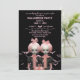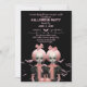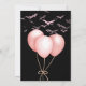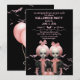 Black and pink adult Halloween party invitation card with a pasteloween design: creepy twins and pink balloons!