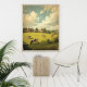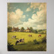 This nostalgic English countryside print features grazing cows, green meadows, and thatched cottages beneath soft skies — a perfect addition for lovers of vintage landscapes and pastoral calm.