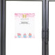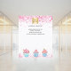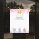 Personalise and add your business logo, name, address, your text. White bacground decorated with pink confetti and cupcakes.