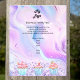 Personalise and add your business logo, name, address, your text. Blush pink, purple, blue pastels holographc bacground decorated with confetti and cupcakes.