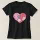 Goth ladies black tee shirt with graphics of a black, pink, and grey patched up heart. Add any text you want for a personalised touch.