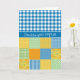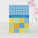 A chic Birthday card, with the greeting in Welsh and a mix'n'match pattern of Blue and White Check Gingham and a faux-patchwork of Daffodil patterns.