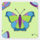 Patchwork Butterfly Pattern on Green Square Sticker