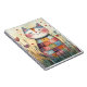 Watercolor Patchwork Valentine Cat in a field of heart flowers.