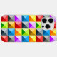 Patchwork Colourful geometric pattern iPhone 15 Case. Many triangles in yellow, orange, red, pink, blue, green colours creating fun modern geometric pattern.